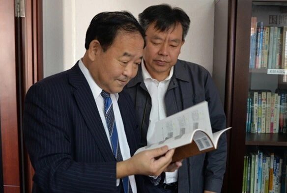 当社社長吉山博より中国側の張竹彬団長に資料紹介。