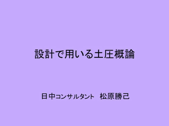 2017年11月27日、日中構造研究所の松原勝己より、「設計で用いる土圧概論」プレゼンテーション資料の無料提供がありました。「技術情報」ページからダウンロードできます。