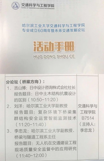 2018年12月29日、弊社社長吉山博が、哈爾濱工業大学交通学院の60周年記念式典に招待されました。論壇で「日中土木構造耐震設計の区別」について講演しました。