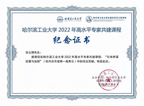 2022年07月29日、弊社代表取締役吉山博が、中国大学の「2022年高水平専家共建課程」向け「日本橋梁耐震設計」の講習会で、計8回16単位分の講義を行いました。テキストは「日本橋梁抗震設計原理」(吉山博著)です。