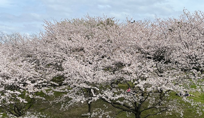 桜が満開。花見日和。